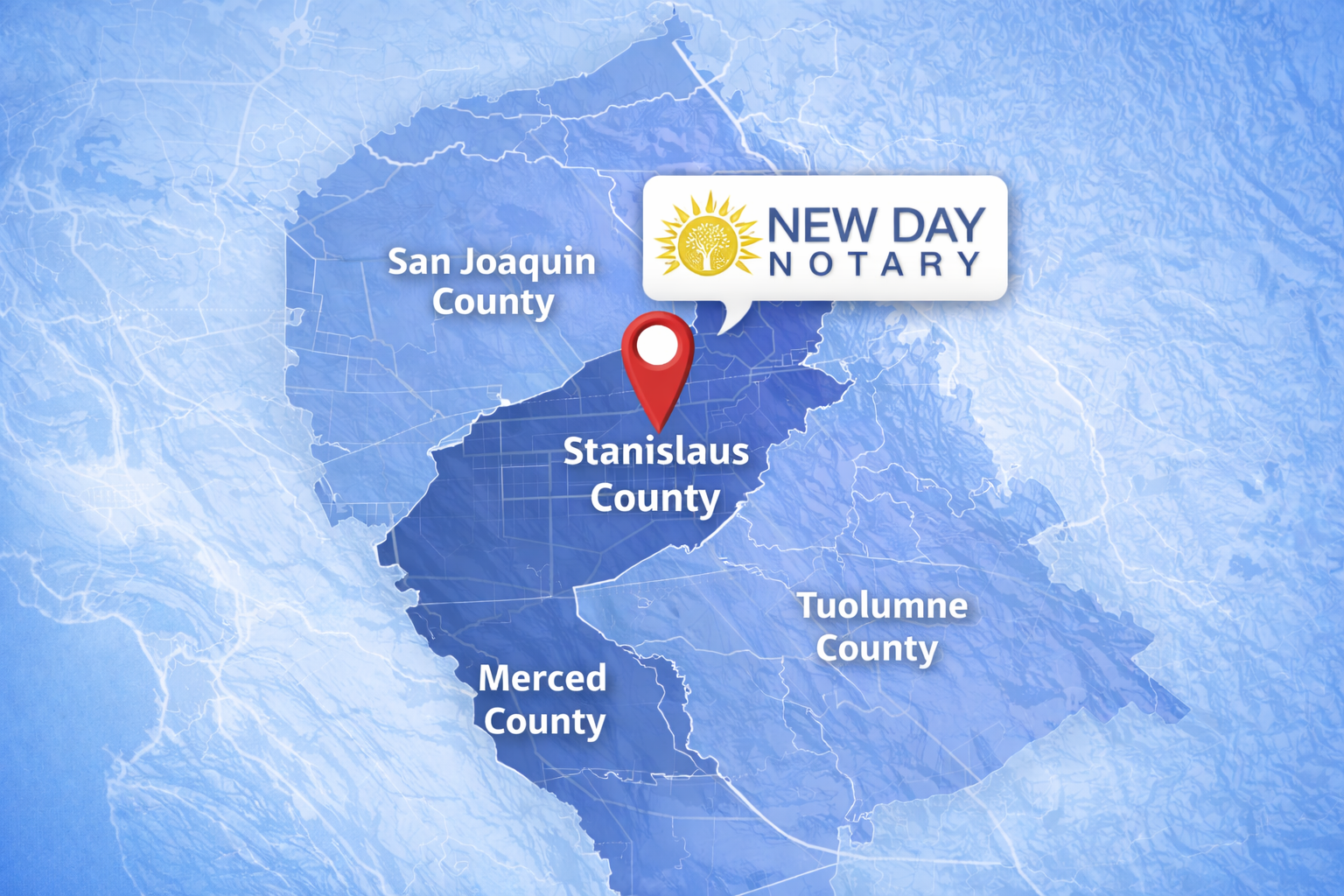 New Day Notary is based in California’s Central Valley and proudly provides mobile notary services across Stanislaus County and nearby areas.