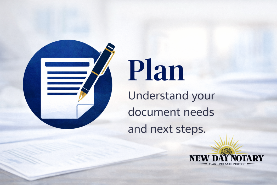 New Day Notary is here to guide you through every step—ensuring your documents are prepared correctly, processed efficiently, and handled with care.