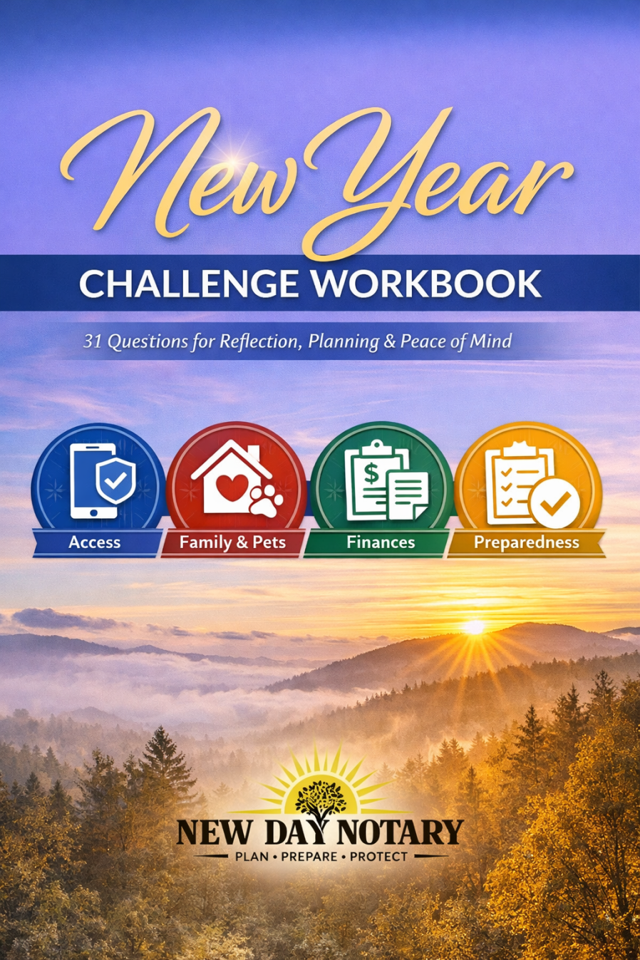 The New Day Notary New Year Challenge Workbook was created to help individuals and families pause, reflect, and take meaningful steps toward clarity—so the people who matter most aren’t left guessing during unexpected moments.